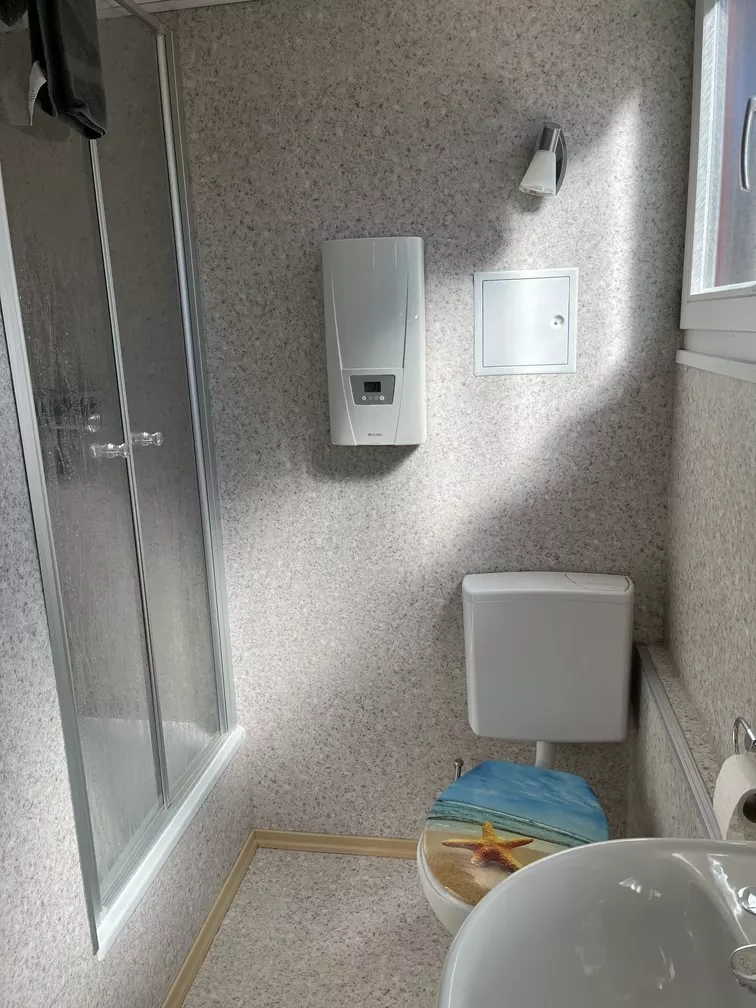 Das freistehende Haus N48 überzeugt mit zwei separaten Schlafzimmern, einem offenen Wohnbereich und einer komplett ausgestatteten Küche. Ein Highlight ist das eingezäunte Grundstück mit Terrasse, Gartenmöbeln und Grill – perfekt für entspannte Abende im Grünen und sicheren Freilauf für Ihren Hund.