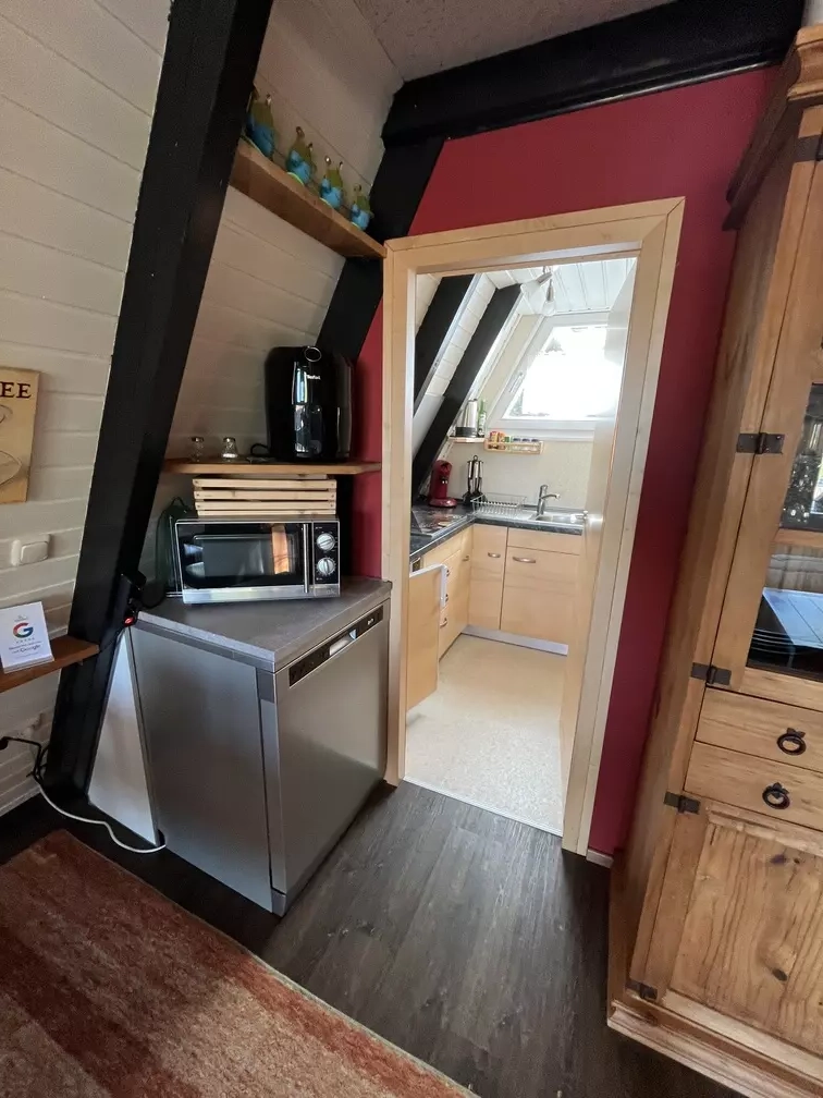 - Küche mit Elektroherd, Geschirrspüler, Toaster, Kaffeemaschine & Wasserkocher